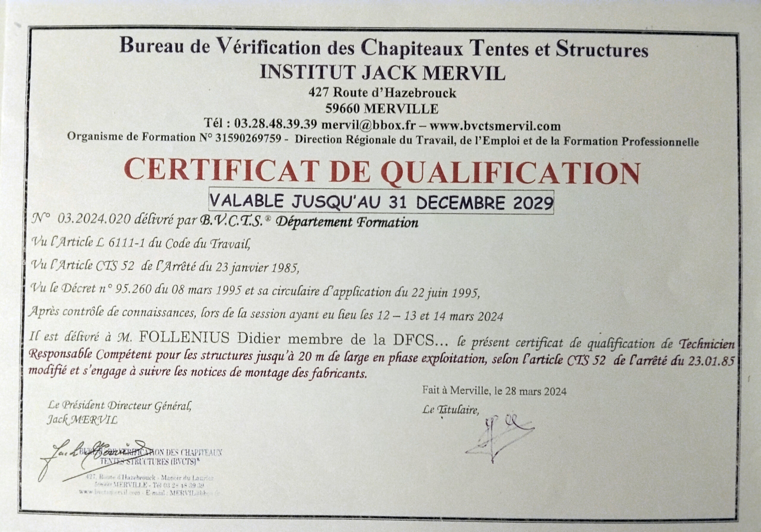 Les formations sont assurées par le BVCTS – Bureau de Vérification des Chapiteaux, Tentes, Structures.
